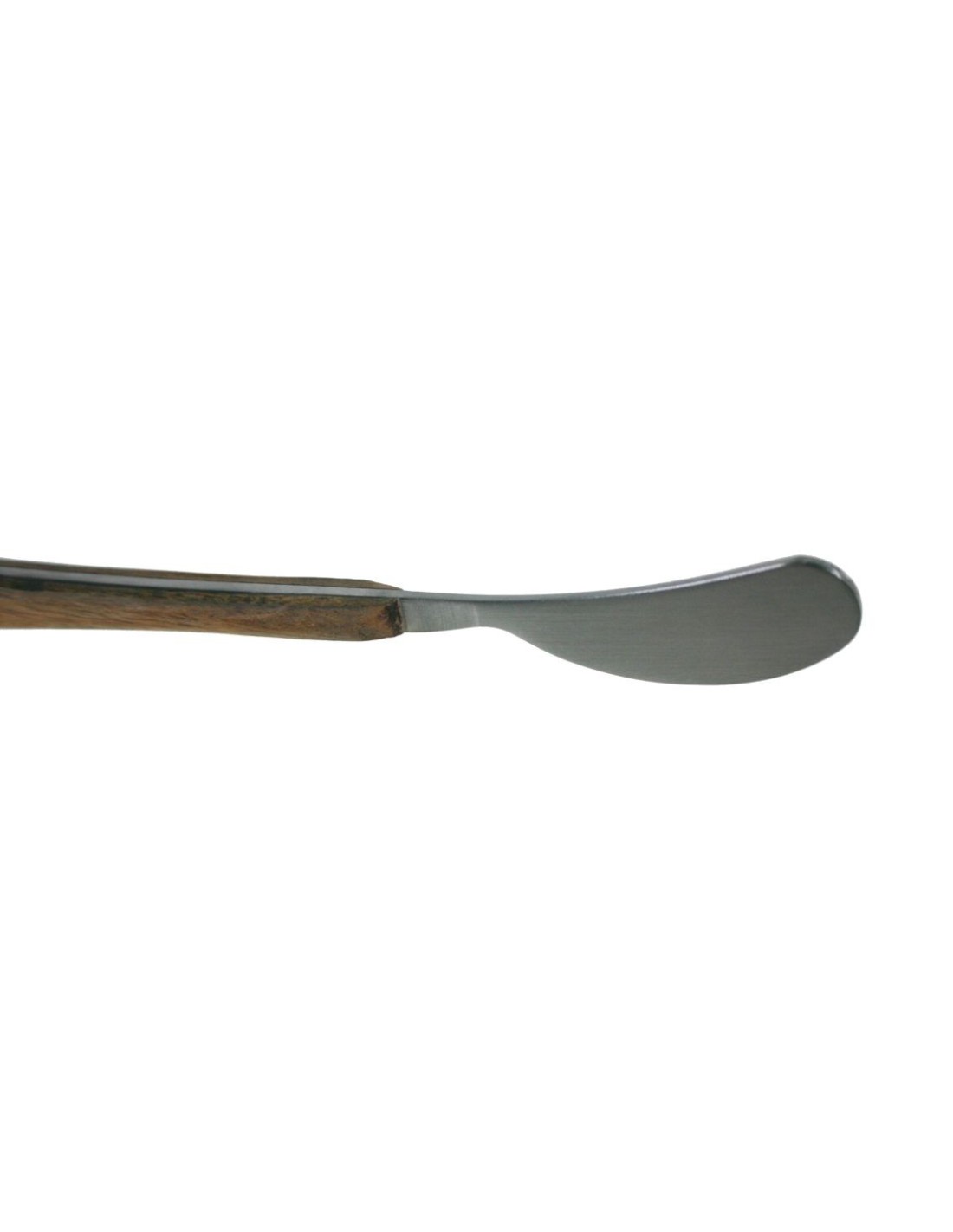 Couteau spatule avec lame en acier inoxydable et manche en bois pour tartiner le beurre, le sandwich au fromage à la crème ou la confiture. Forme ergonomique avec un style très traditionnel.