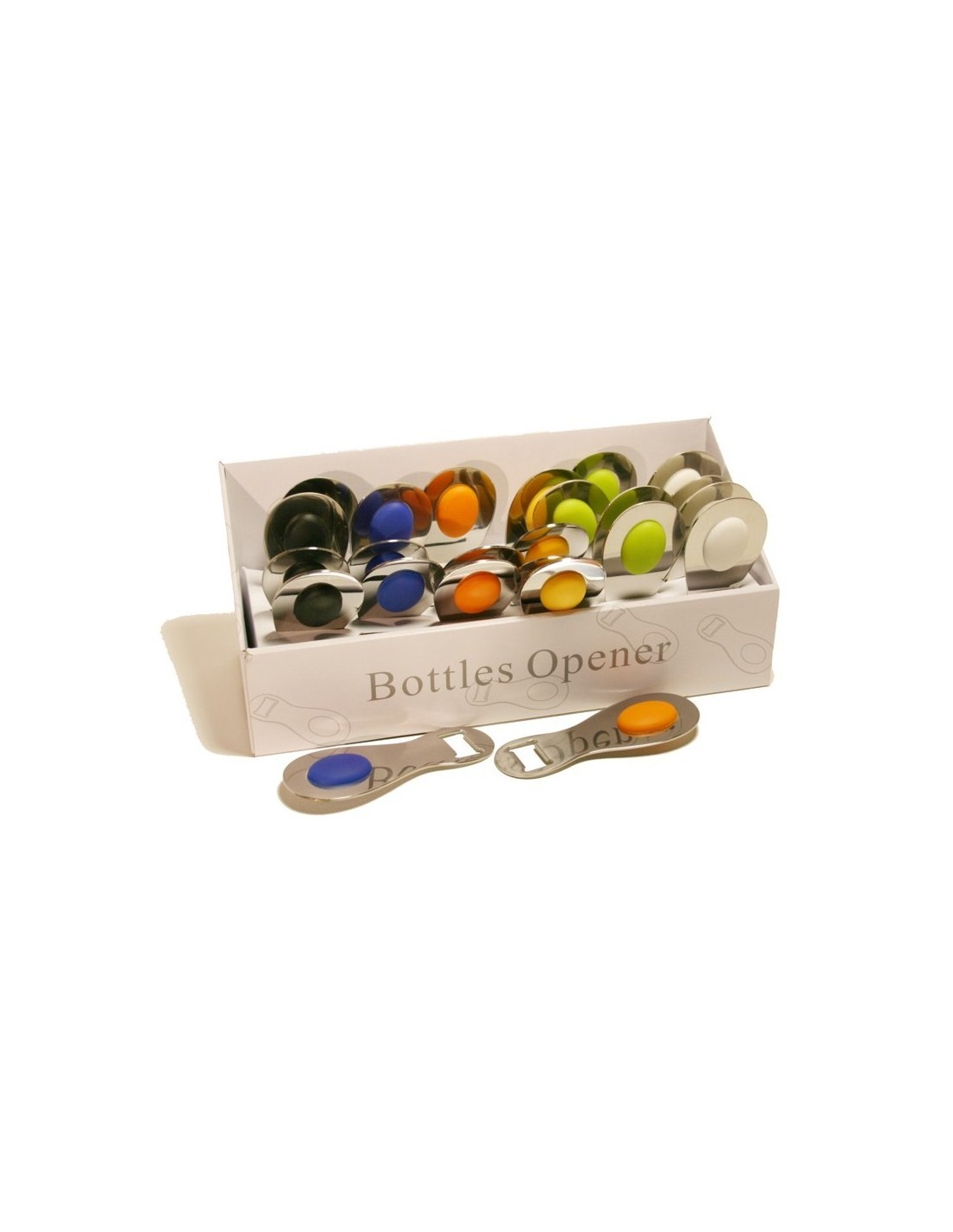 Décapsuleur en décapsuleur en métal inoxydable avec des détails de couleur utiles pour la cuisine. Mesures: 12x5 cm.