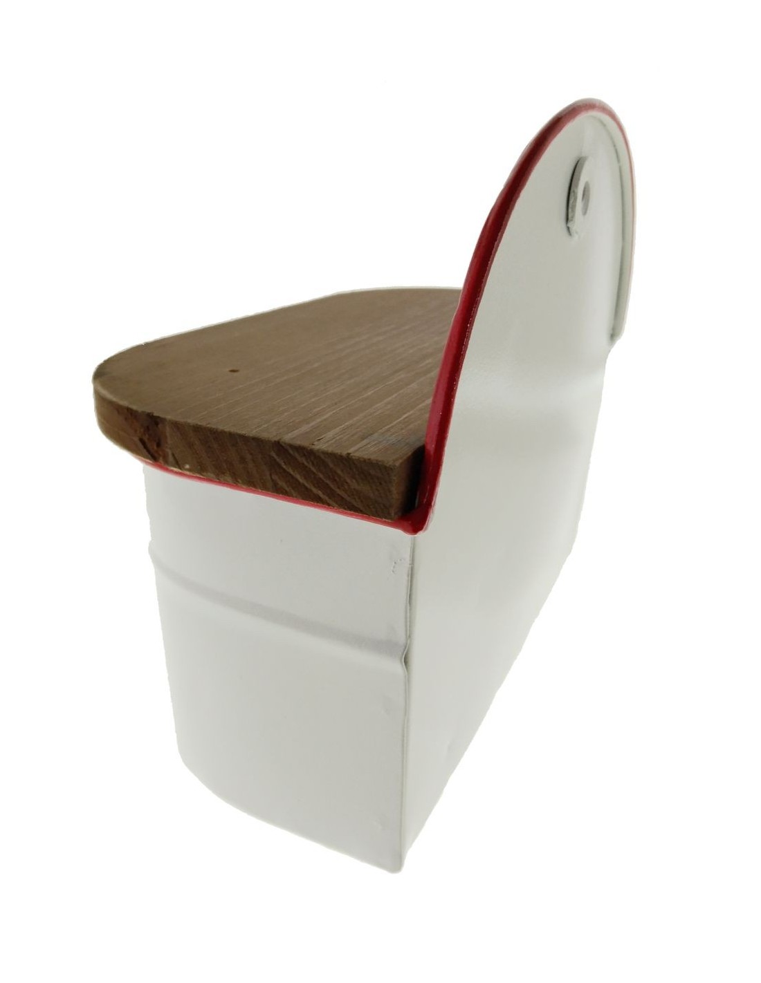 La salière de style vintage en métal blanc et décorée en rouge contient un couvercle en bois individuel, vous pouvez la poser sur votre comptoir de cuisine ou l'accrocher au mur. En plus d'être très fonctionnelle, cette salière décorera également votre chambre, un bon cadeau pour la fête des mères et pourquoi pas pour vous. Dimensions totales : 16x19x10 cm. Mesures internes : 9x17x8,5 cm.