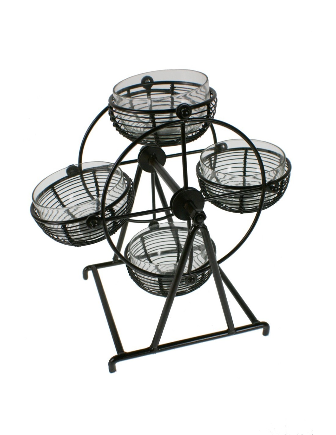 Pour partager avec des amis ou en famille, nous présentons cette table tournante centrale avec quatre sources de verre individuelles afin de savourer un bon apéritif ou de présenter les sauces. Si vous ne voulez pas l’utiliser à l’apéritif, mieux qu’une bonne décoration pour votre table de style rustique ou que vous ayez toujours des bonbons à la main.