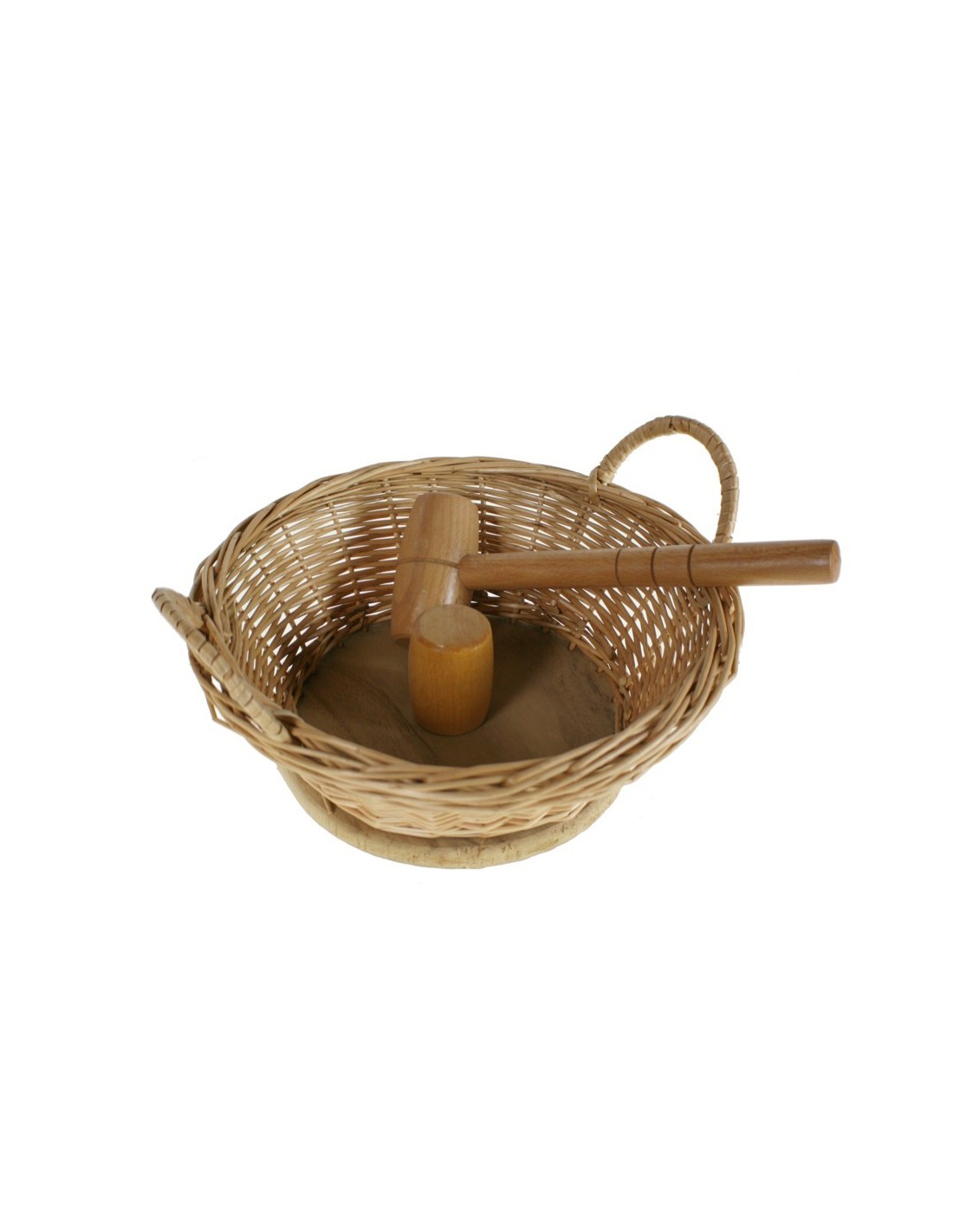 Casse-noisette en osier avec maillet en bois. Un classique pour votre maison.