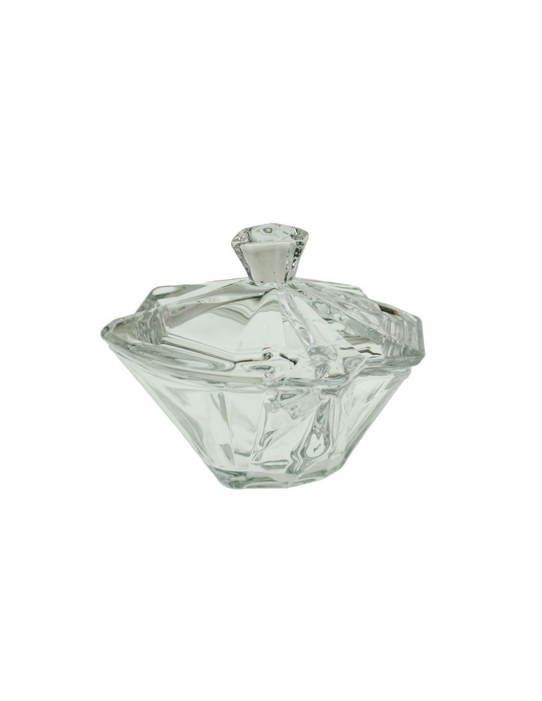 Bonbonnière en cristal aux formes irrégulières, très solide et agréable au toucher, ustensile de table. Dimensions : 12x15x11cm.