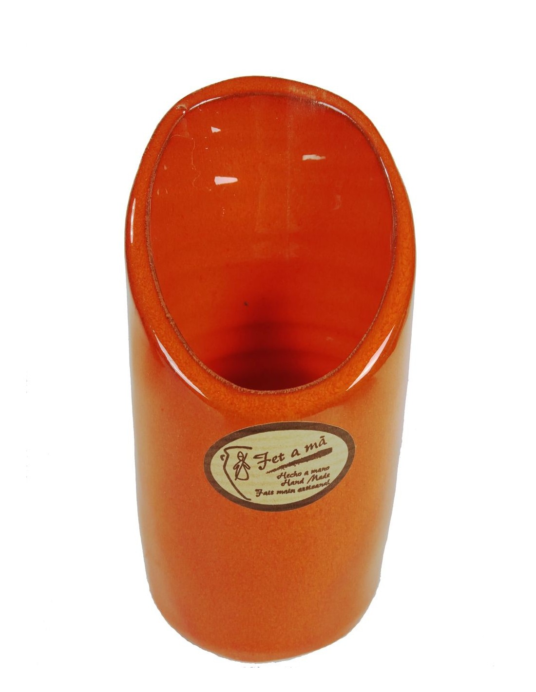Petit vase en forme de canne en céramique orange fabriqué à la main pour la décoration de la maison. Dimensions : 16xØ8 cm.
