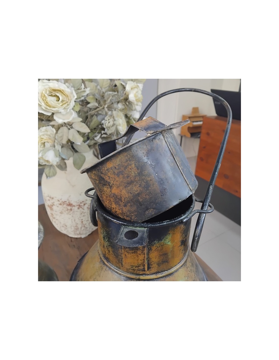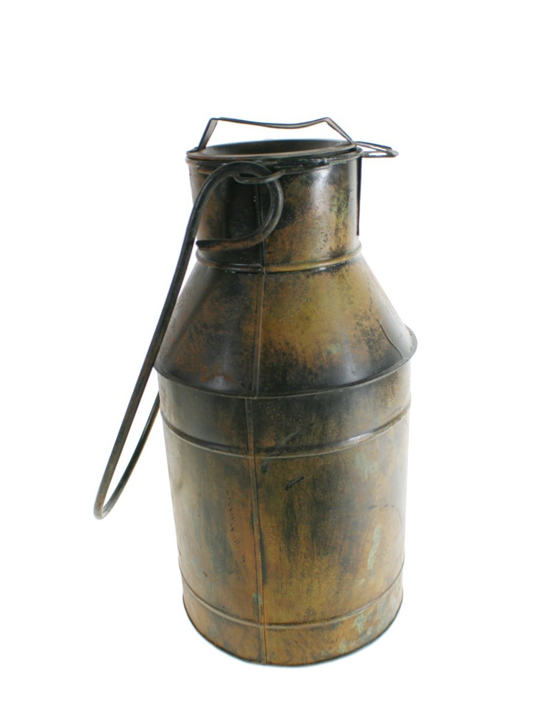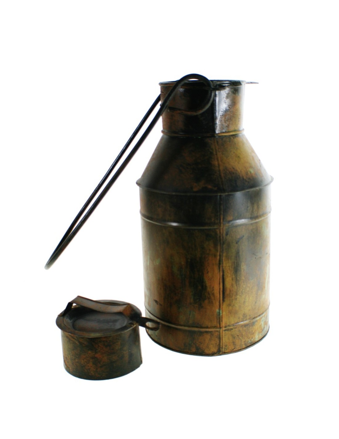 Pot à lait en tôle au look antique, élégance exclusive pour votre maison de style vintage. Dimensions : 45xØ22 cm.